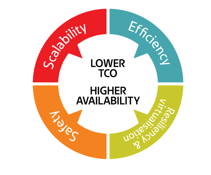 - Hot-Synch Technology -: No Single Point Of Failure introduced into a parallel operating UPS system and Ensure vertical and horizontal upgrade.